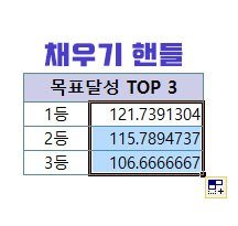 목표 대비 달성률이 뛰어난 TOP3의 값을 구할 텐데 먼저 1, 2, 3 에 순위 서식을 지정해 보겠다.