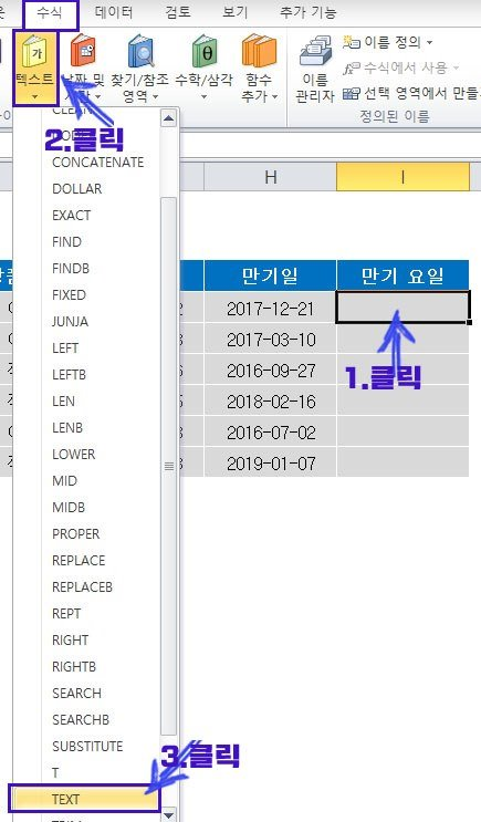 아래예제에서는만기일자에해당하는요일이입력될수있도록함수를적용시켜보자.