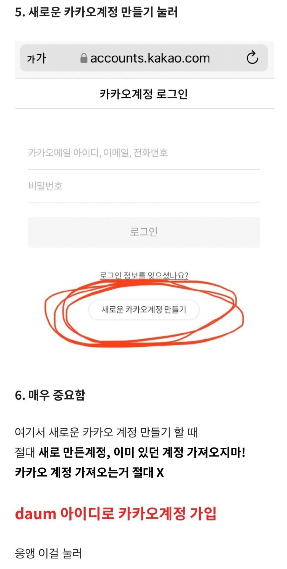 5. 새로운 카카오계정 만들어 누르기