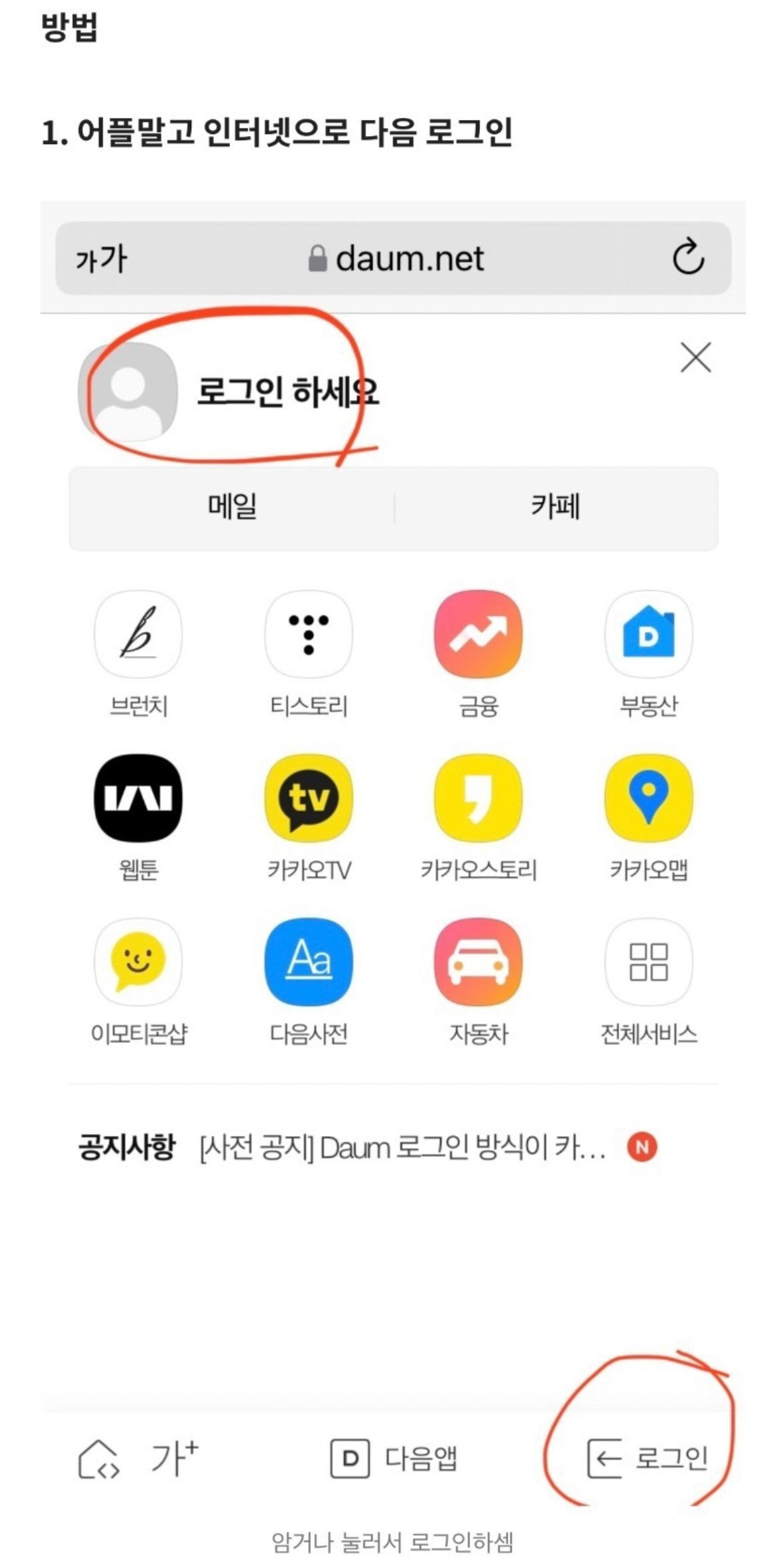 1. 어플 말고 인터넷으로 다음로그인