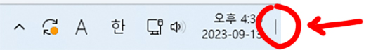 1. 우측 하단 시계표시 옆에 마우스 커서 올리면 저 세로줄 클릭 바로 바탕화면